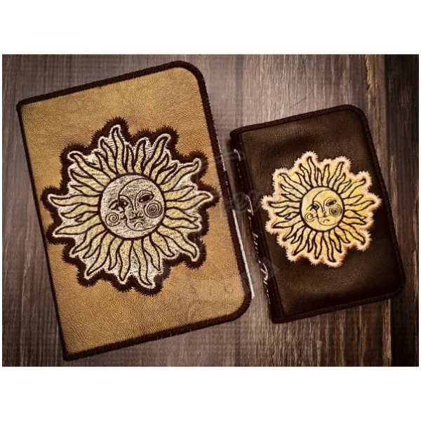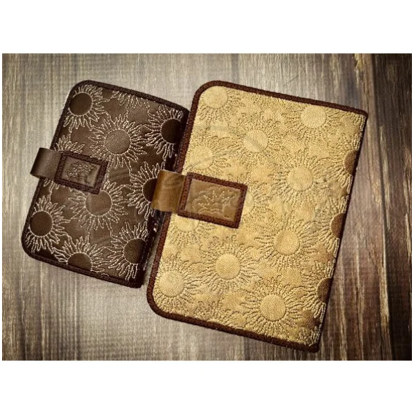 The smaller fits the 5X7 hoop and uses a mini composition notebook. The larger fits a 6X10 hoop and uses an A6 size notebook.